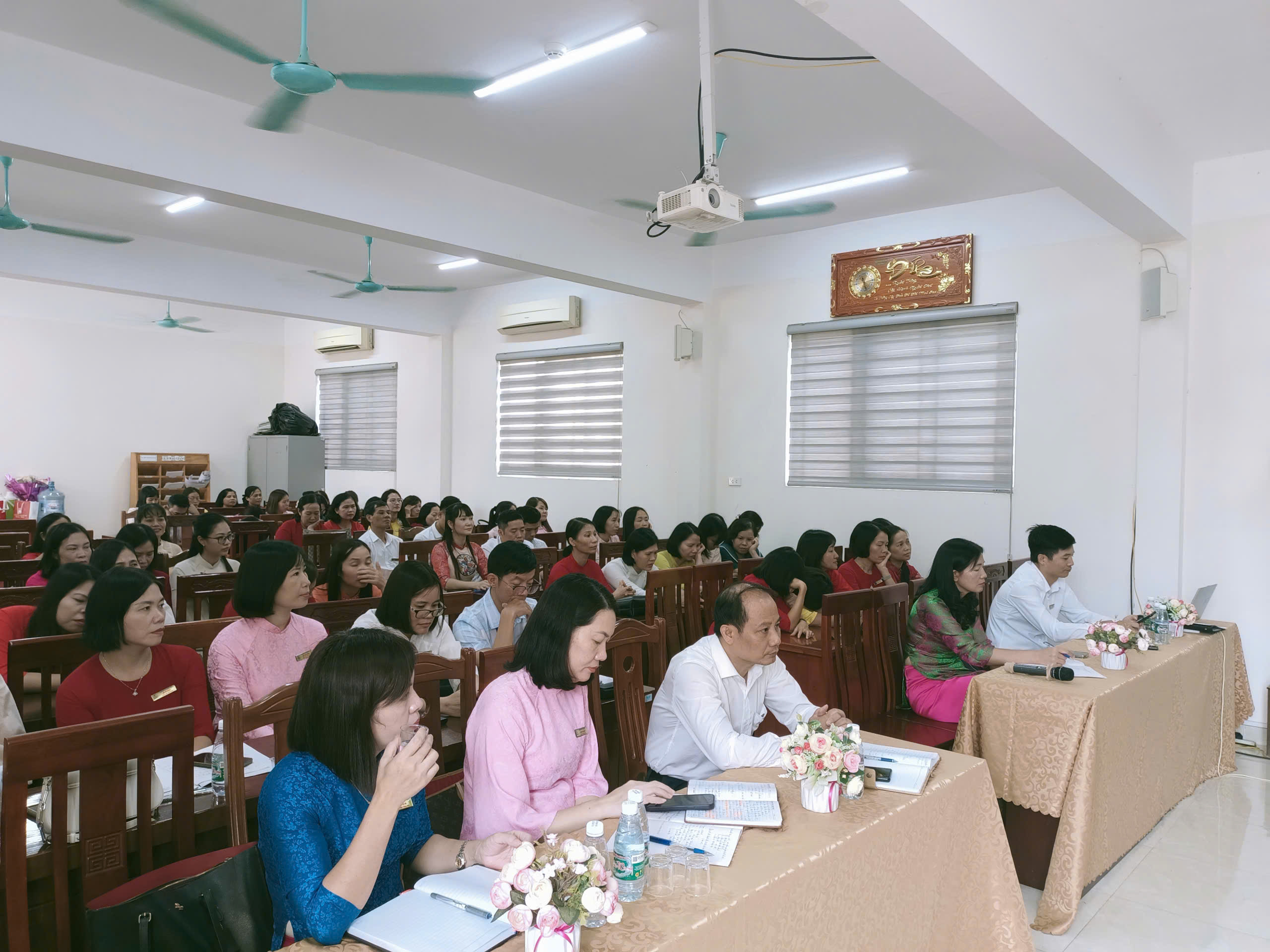 Tham dự hội nghị có toàn thể cán bộ, giáo viên, nhân viên trong biên chế nhà trường. Trong sắc áo dài truyền thống của các cô giáo và trang phục trang nghiêm của các thầy, hội nghị mở đầu bằng nghi thức Chào cờ trang trọng, thể hiện niềm tự hào dân tộc và tinh thần trách nhiệm của đội ngũ nhà giáo.