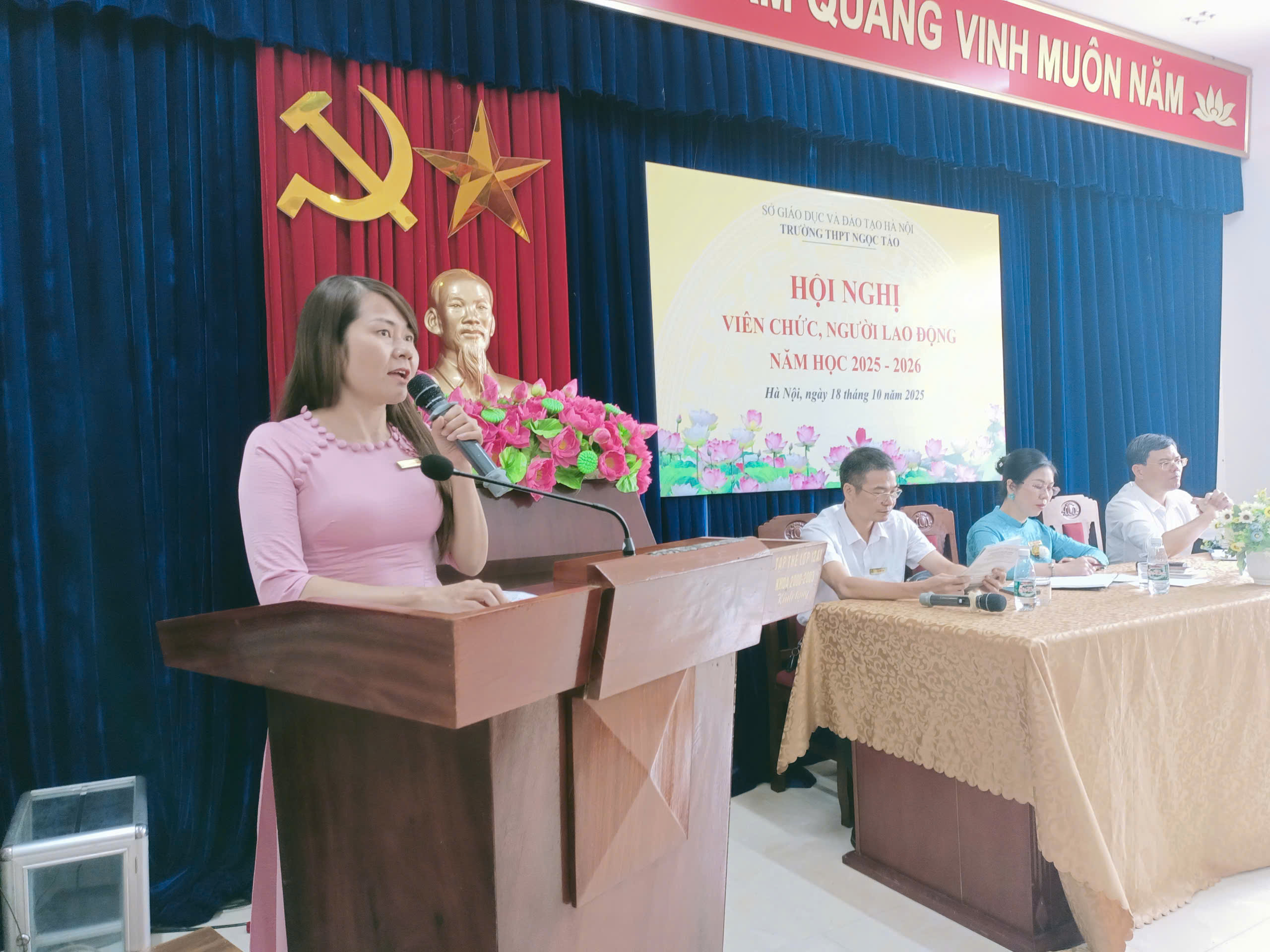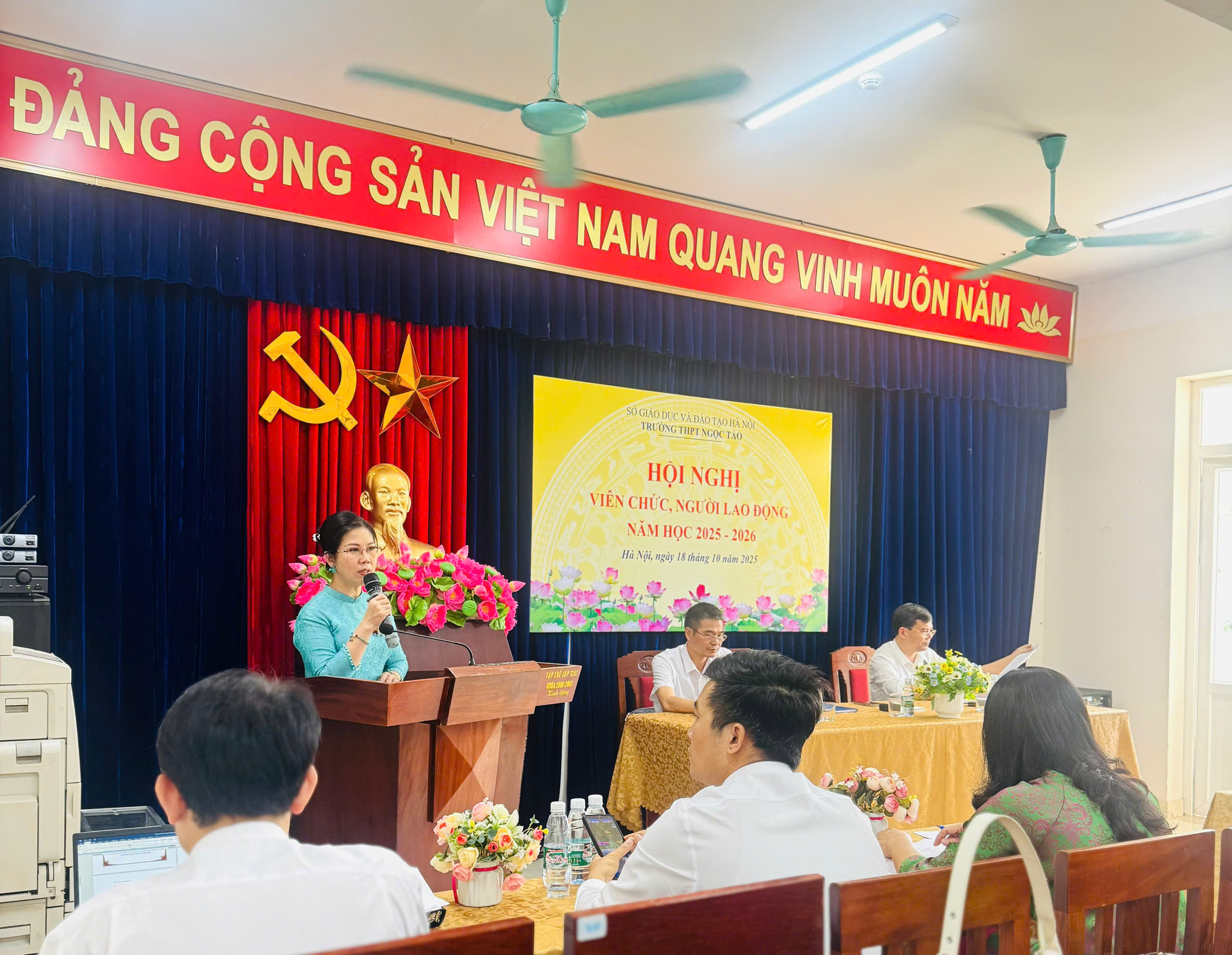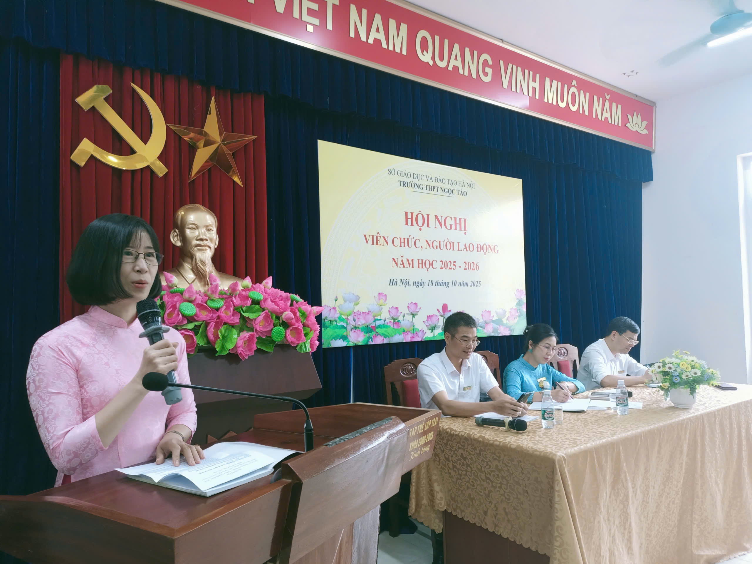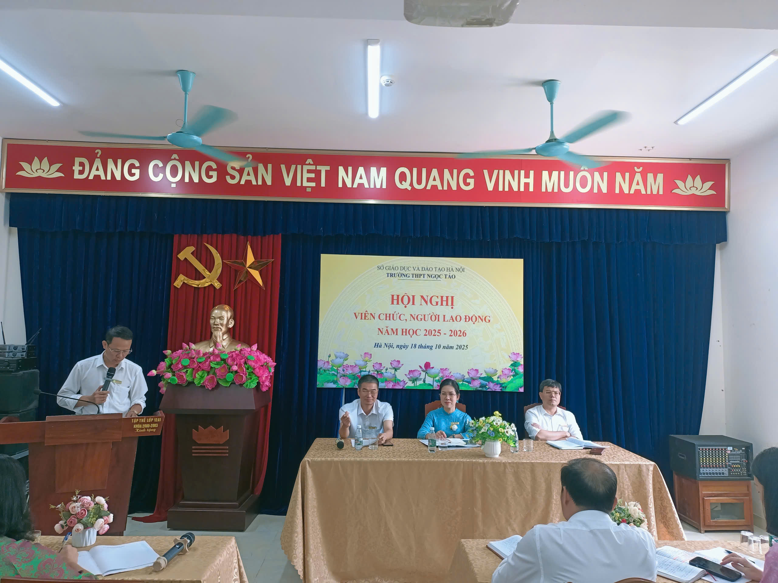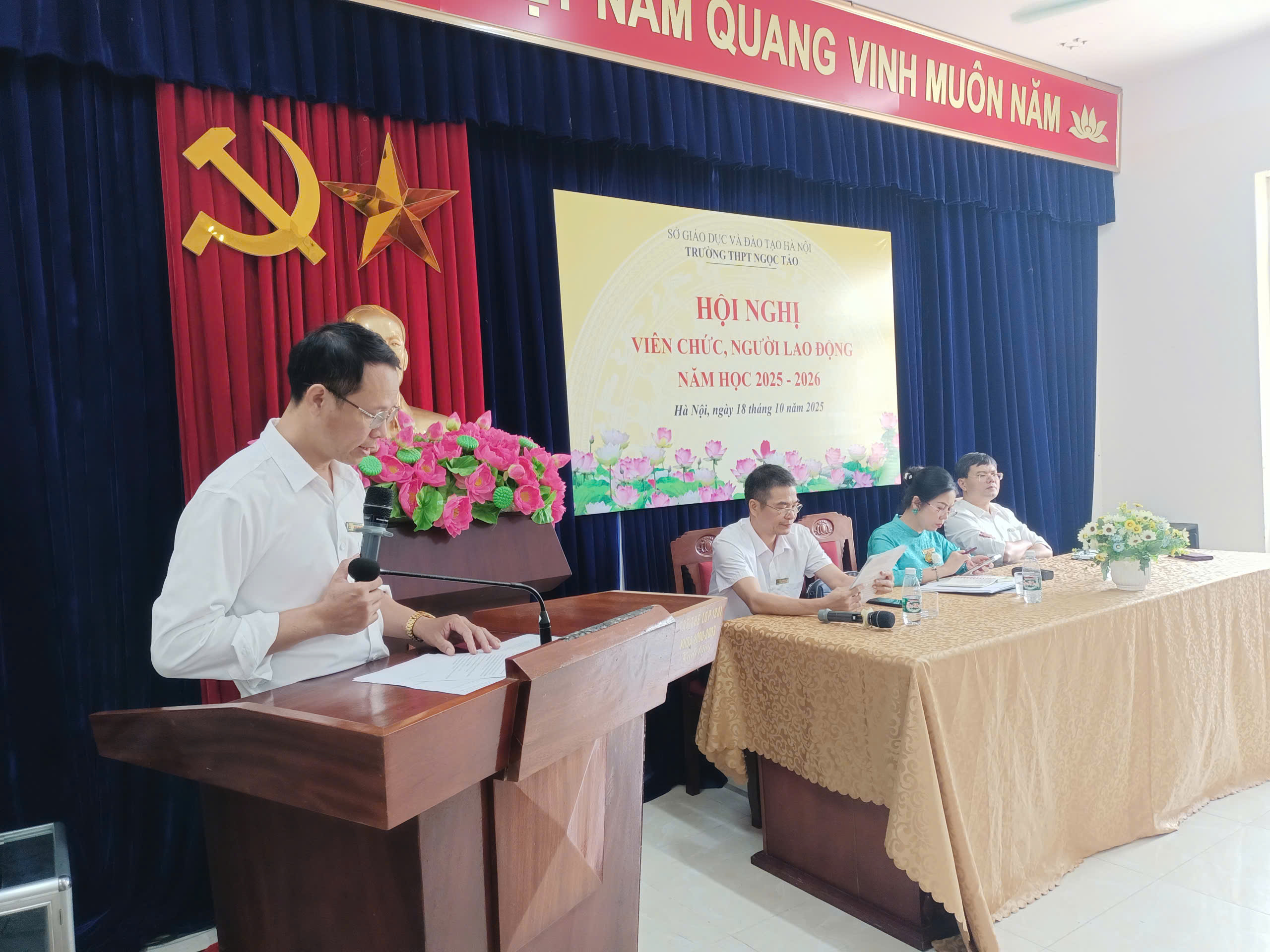 Sáng ngày 18 tháng 10 năm 2025, tại phòng họp Hội đồng giáo dục, Trường THPT Ngọc Tảo long trọng tổ chức Hội nghị Viên chức, Người lao động năm học 2025 – 2026. Đây là hoạt động thường niên có ý nghĩa quan trọng, thể hiện tinh thần dân chủ, đoàn kết và trách nhiệm của tập thể sư phạm nhà trường; đồng thời là dịp nhìn lại kết quả thực hiện nhiệm vụ năm học 2024 – 2025, đề ra phương hướng, giải pháp cho năm học mới.