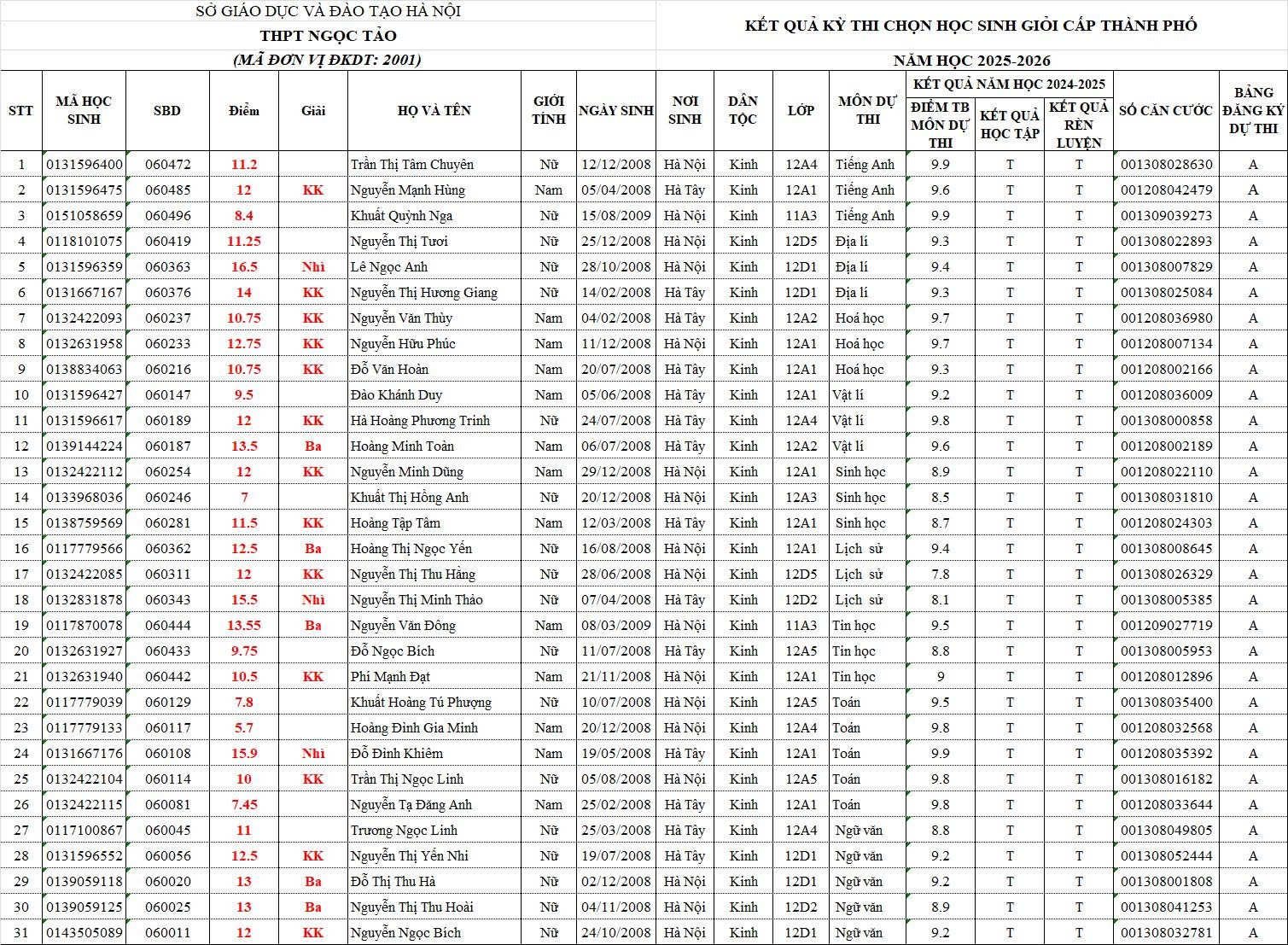 - KẾT QUẢ KỲ THI HỌC SINH GIỎI CẤP THÀNH PHỐ LỚP 12…