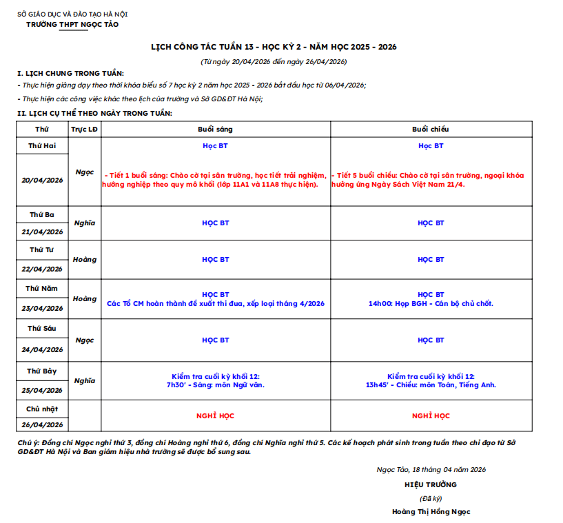 - LỊCH CÔNG TÁC TUẦN 4 - HK1 - NĂM HỌC 2025 - 2026 (Từ…