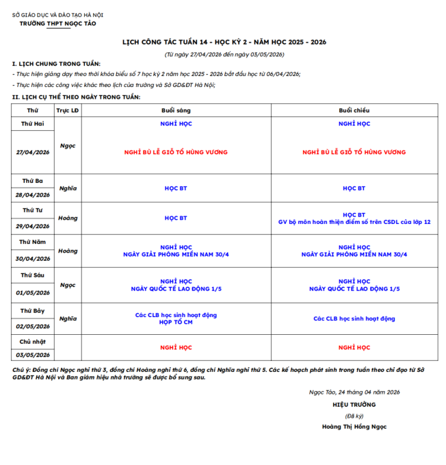 - LỊCH CÔNG TÁC TUẦN 4 - HK1 - NĂM HỌC 2025 - 2026 (Từ…