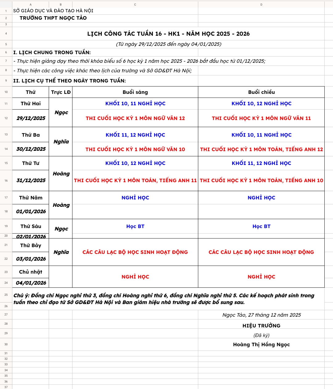 LỊCH CÔNG TÁC TUẦN 17 – HK1 – NĂM HỌC 2025 – 2026 (Từ ngày 29/12/2025 đến ngày 04/01/2025)