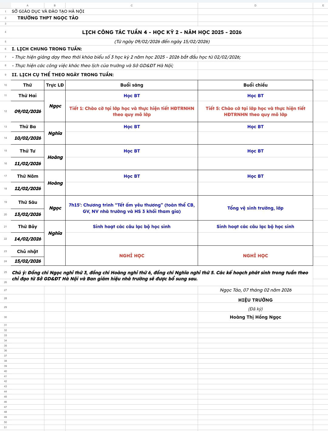 - LỊCH CÔNG TÁC TUẦN 4 - HK1 - NĂM HỌC 2025 - 2026 (Từ…